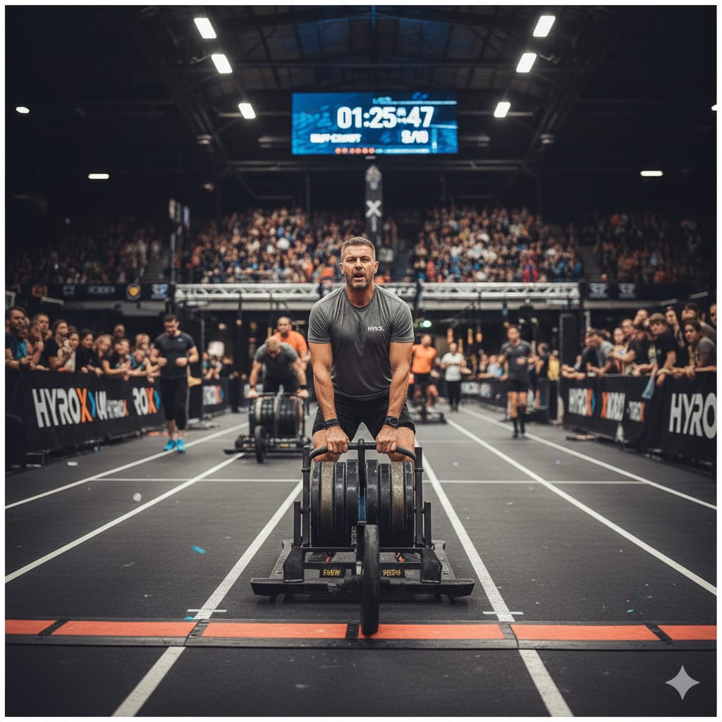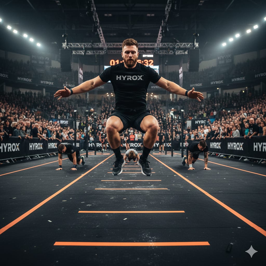 El nombre HYROX surge de la unión de dos conceptos clave: “hybrid” (híbrido) y “rockstar” (rendimiento de alto nivel). Esto hace referencia a su esencia: una mezcla entre el atletismo de resistencia y el entrenamiento funcional con movimientos de fuerza, potencia y control corporal.